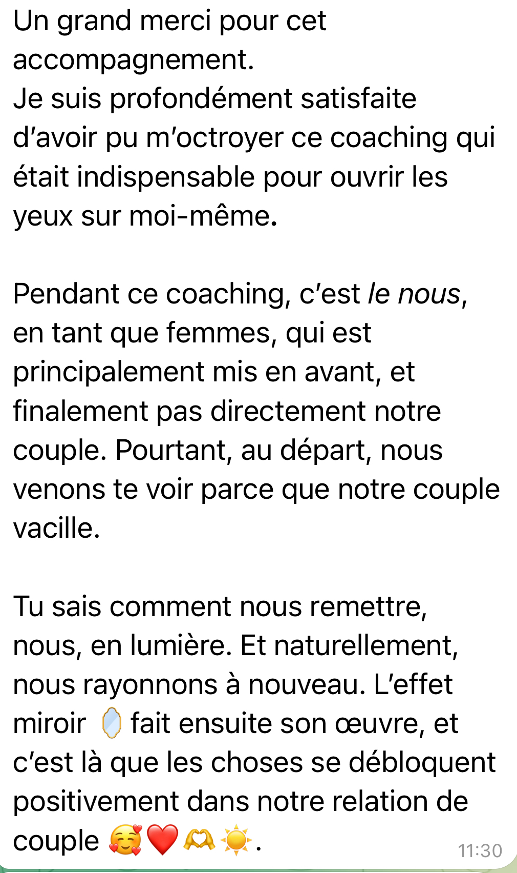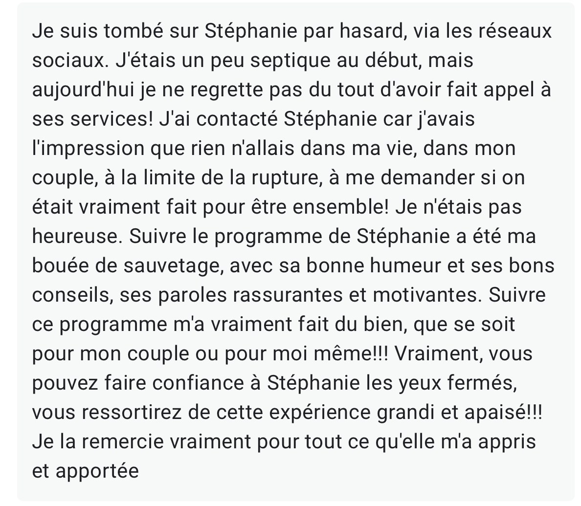 Dans ce programme tu vas avoir toutes les clés pour raviver la flamme avec ton conjoint, et ainsi éviter toutes les erreurs que TOUS les couples font et qui finissent par les détruire.