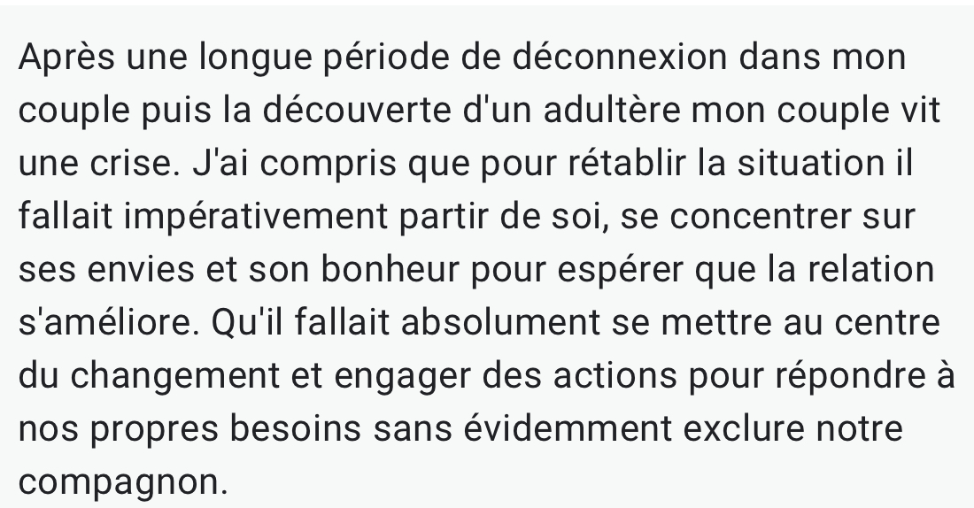 Un mini coaching d'une qualité exceptionnelle pour passer d'un couple en crise à une relation sans prise de tête, tout en respectant tes valeurs avec une touche de fun